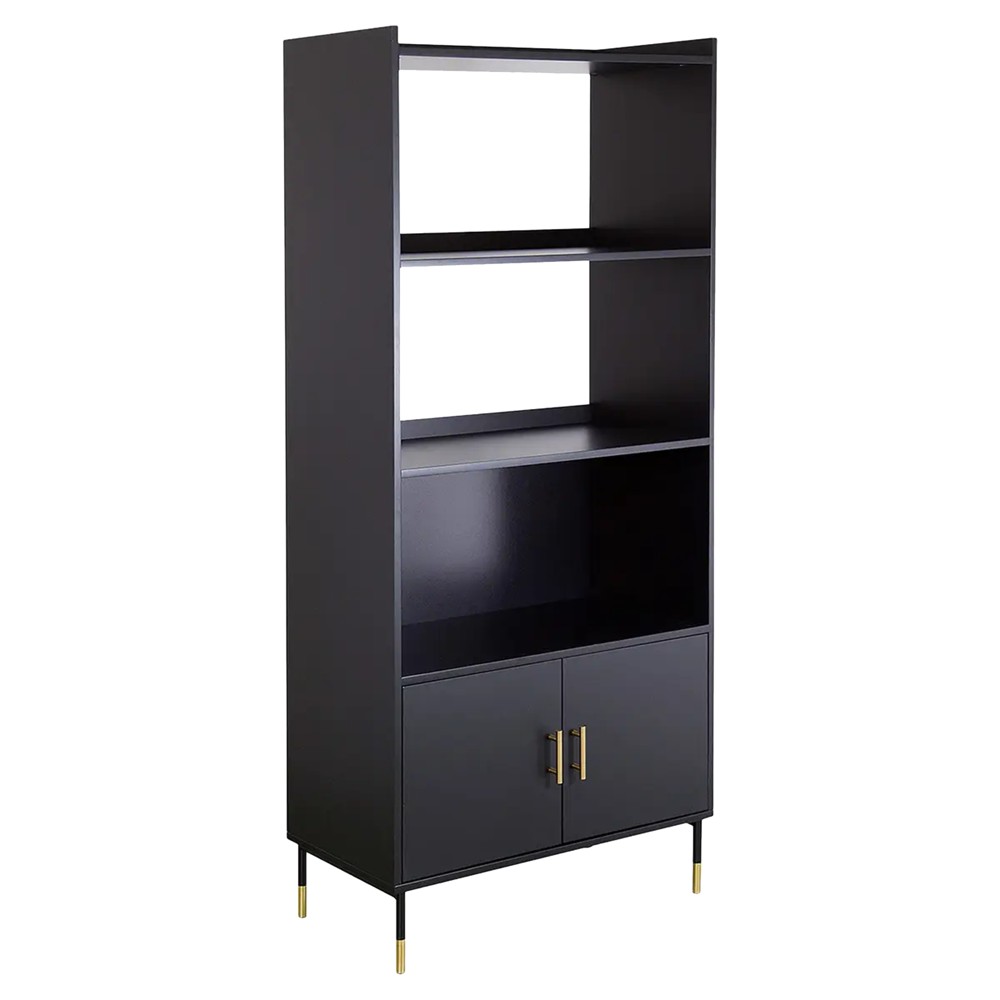 Ruani të gjithë librat tuaj në një mënyrë elegante në këtë raft librash Tedy me 2 vende. Kjo njësi magazinimi është projektuar për t'i dhënë një pamje moderne dhe origjinale ambientit tuaj. Është prej druri mdf dhe ka një pamje të zezë me detaje floriri. Për më shumë stabilitet, ky raft librash Tedy ka këmbë metalike. Përveç kësaj, lartësia e çdo rafti mund të strehojë çdo libër pavarësisht nga madhësia e tij.