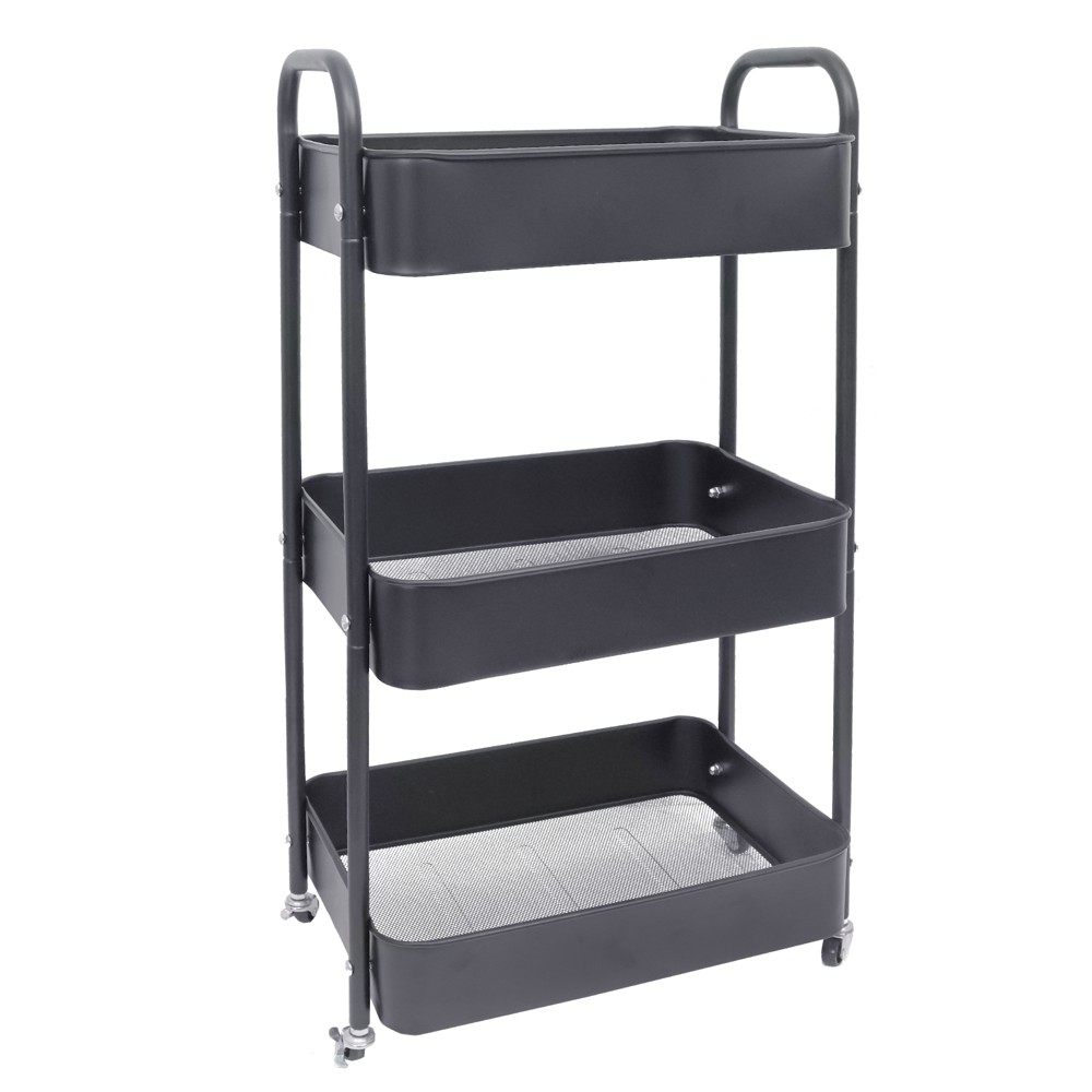 Raft magazinimi, 3 nivele, me rrota, metal, gri/e lehtë, 40x28xH78 cm