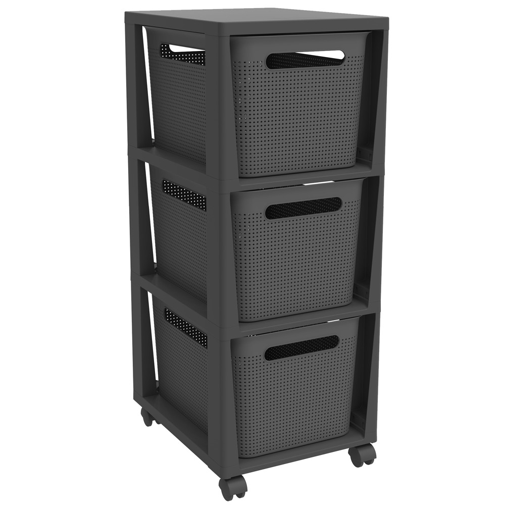 Raft magazinimi me rrota "Brisen" plastik ngjyrë antrasit, e zezë, Kapaciteti 3 x 16 l, Përmasat : H 77 cm x L 36.6 cm x P 29.6 cm