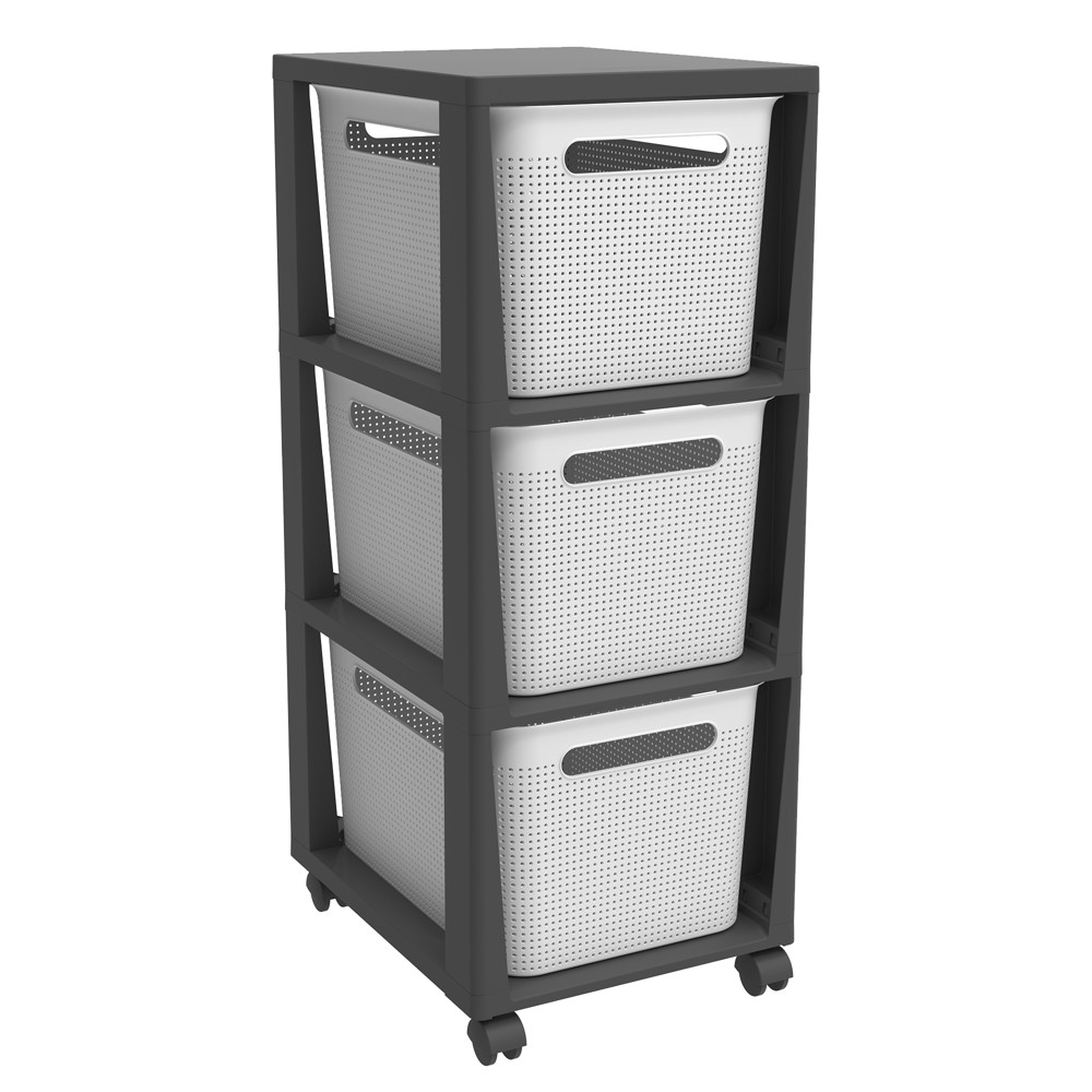 Rafti i magazimit "Brisen" prodhuar nga ROTHO swiss made i jep zgjidhje rrëmujës në shtëpine tuaj me tre katet e tij të magazinimit me kapacitet prej 16 litrash secili. Ideuar në material plastik të ricikluar dhe të riciklueshëm në ngjyrë të bardhë me skelet të zi si dhe me finiturë mat. Dizajni modern dhe linjat e thjeshta përshtaten lehtësisht me arredimin e cdo ambjenti. I pajisur me rrota ky raft është tepër praktik dhe komod. Përmasat, lartësia : 77 cm, gjatësia : 36.6 cm, gjerësia : 29.6 cm.