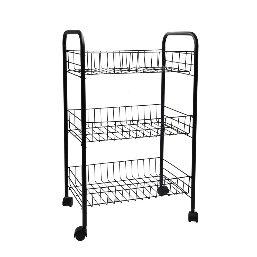 Raft mbajtes , EPOXY, me rrota, 3 kosha, metal, e zezë, 36.5x26xH65cm