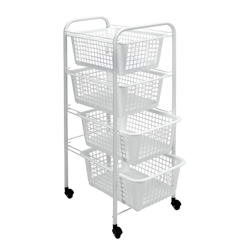 Po vlerësoni:Raft mbajtës lëvizës, Miami, veshje ldpe, 4 kosha të heqshëm, kosha pp, e bardhë, rrota të rrotullueshme 360º, 30x38xH83 cm