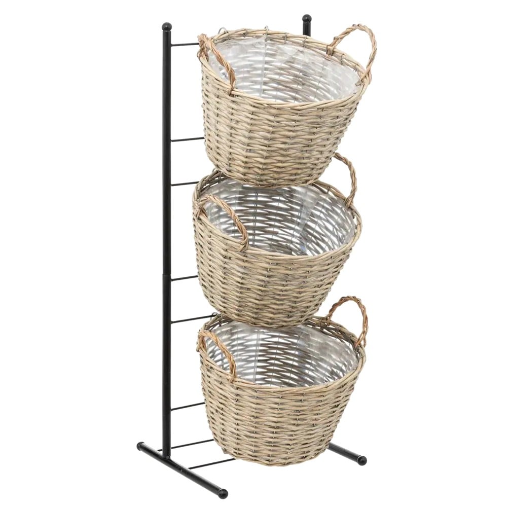 Rafti vjen me tre shporta shelgu të punuara bukur që i shtojnë një prekje plot stil ndërsa ofrojnë hapësirë të bollshme për sende të ndryshme. E ndërtuar me një kornizë metalike, ky raft siguron qëndrueshmëri dhe jetëgjatësi. Me përmasa 32xH833 cm, ky raft është ideal për organizimin e zonave të ndryshme të shtëpisë tuaj, duke përfshirë dhomat e ndenjes si dhe çdo dhomë tjetër. Kombinimi i metalit me shelgun krijon një kontrast tërheqës vizualisht, duke e bërë këtë raft një shtesë elegante për çdo dekorim.