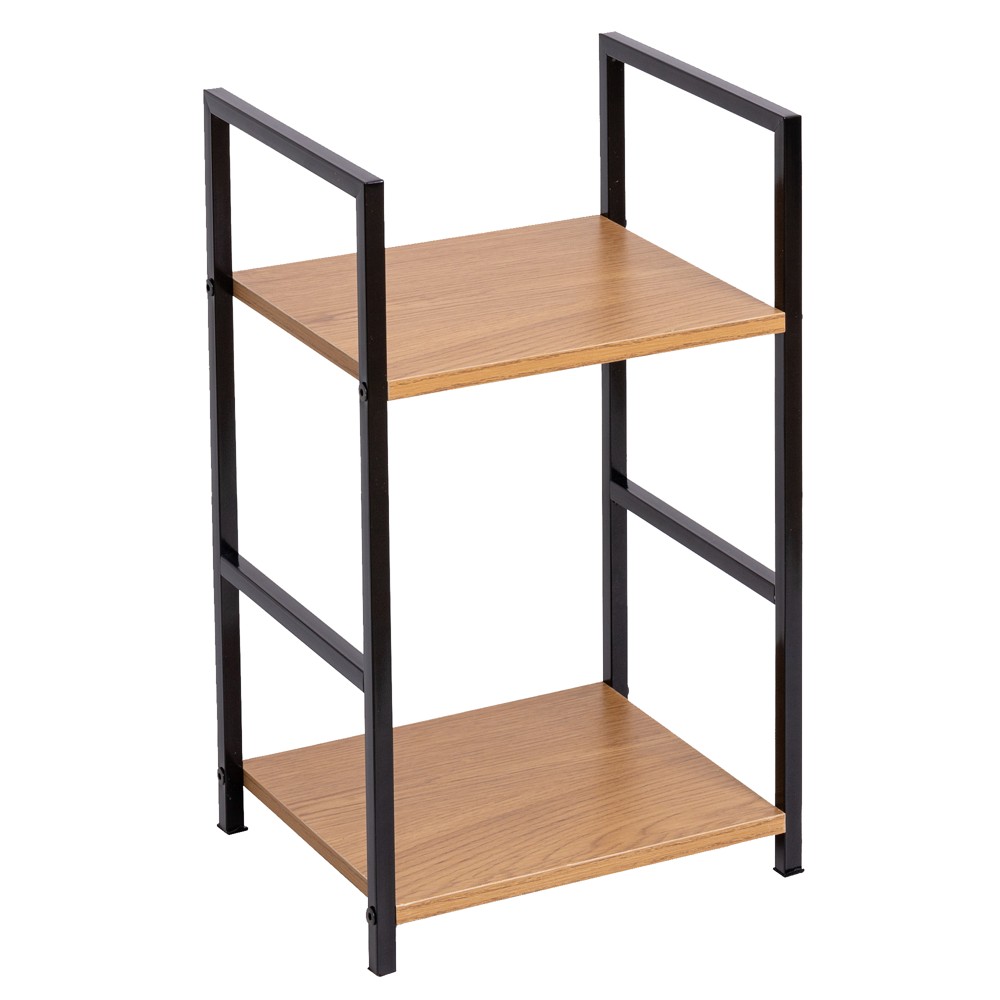 Multifunctional shelf, 2 levels, metal/melamine, black/natural oak, 29.1x23.5xH48 cm