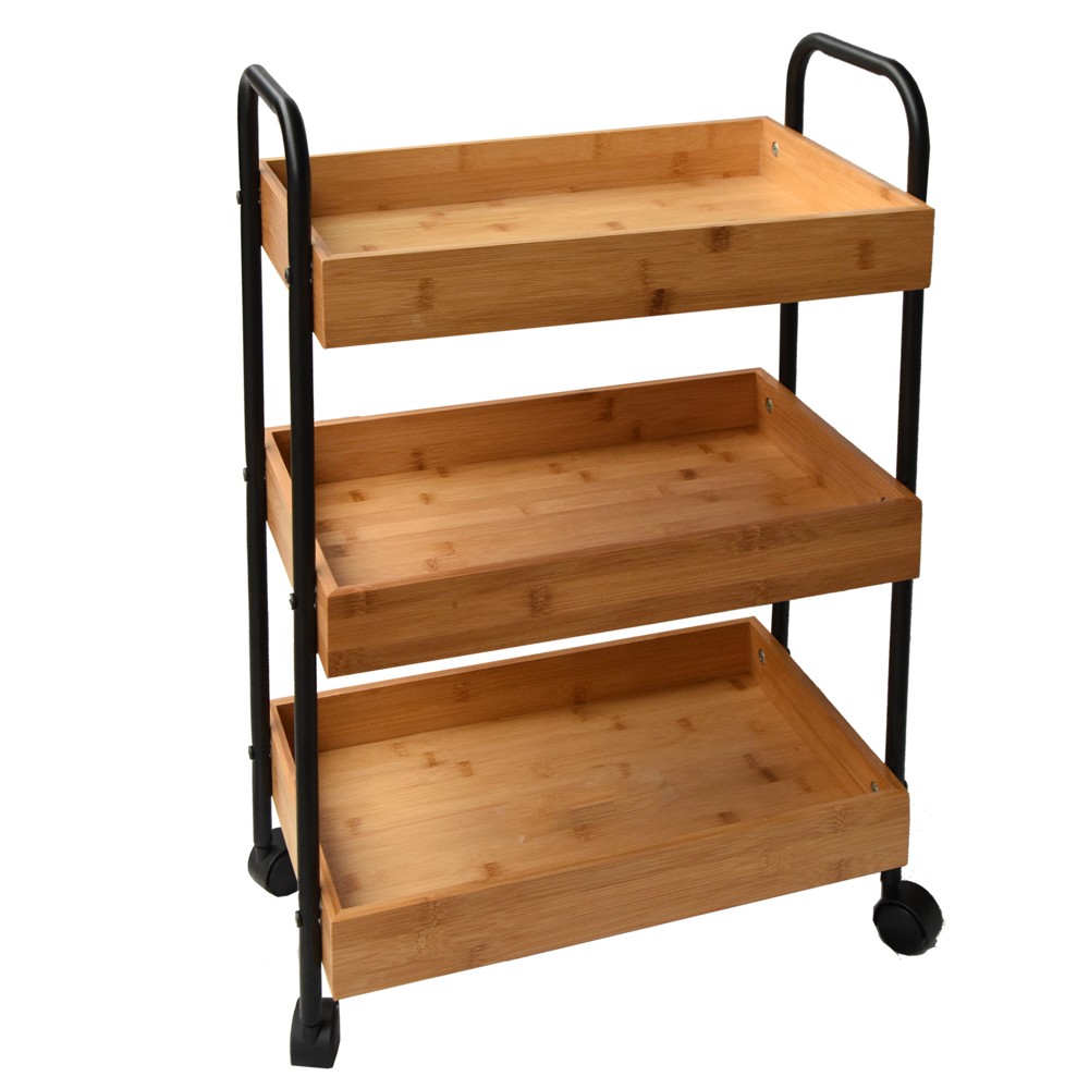 Rafti shumëfunksional me rrota, është një aksesor ideal për mbajtjen e produkteve te ndryshme. Me dizajnin klasik dhe me kombinimin e metalit me drurin e bambusë, ky raft do të dhurojë stil në ambientin tuaj. Rafti ju dhuron hapësire të bollshme për organizimin e produkteve të përdorimit të përditshëm. Funksional dhe tërheqës, me stilin dhe hijeshinë bashkëkohore.