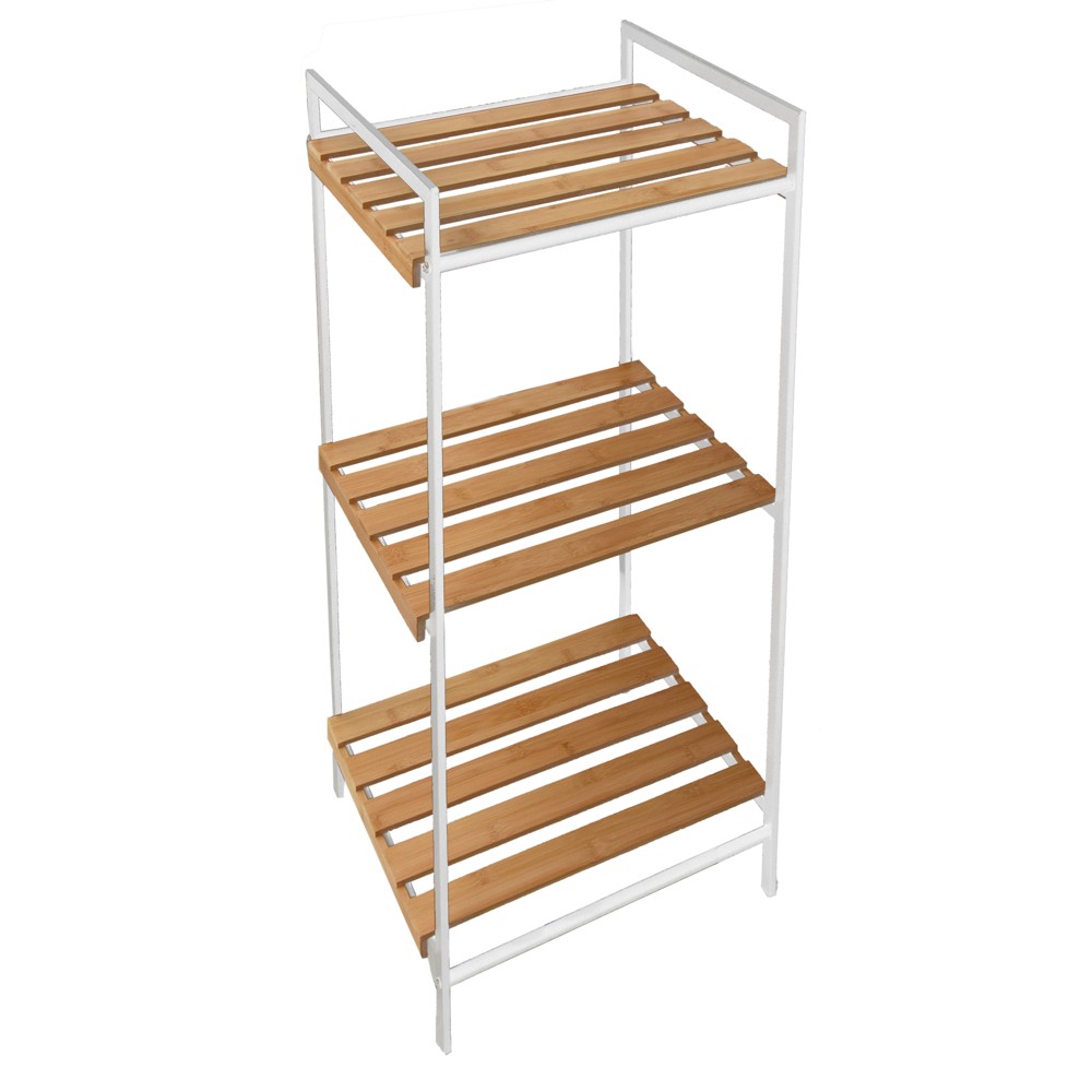 Raft shumëfunksional, 3 nivele, metal/ bambu, e bardhë, 39x33xH83.5 cm