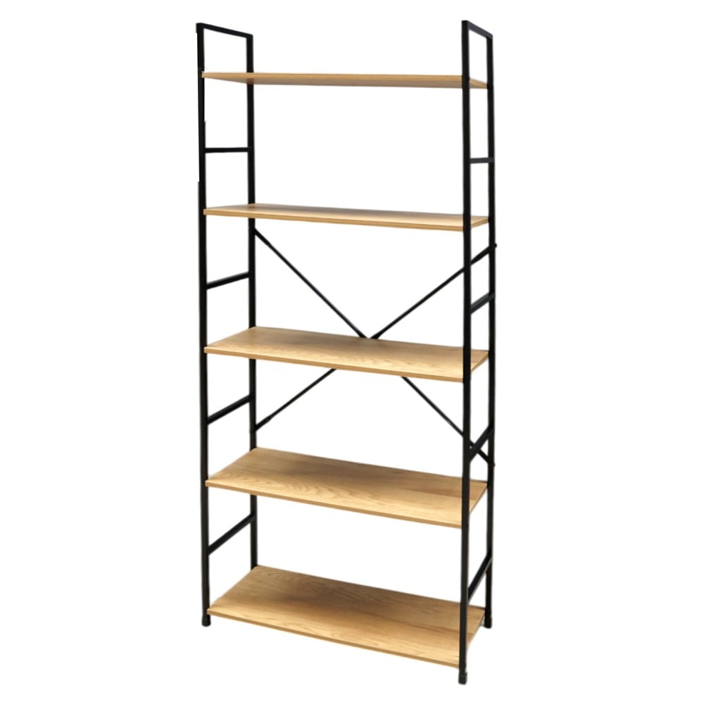 Raft shumëfunksional, 3 nivele, metal/melaminë, e zezë/lisi natyral, 58.6x23.5xH144cm