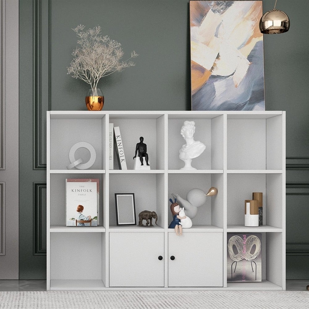 Po vlerësoni:Raft shumëfunksional me kabinet, me 2 dyer, melaminë, e bardhë, 129x30xH97 cm
