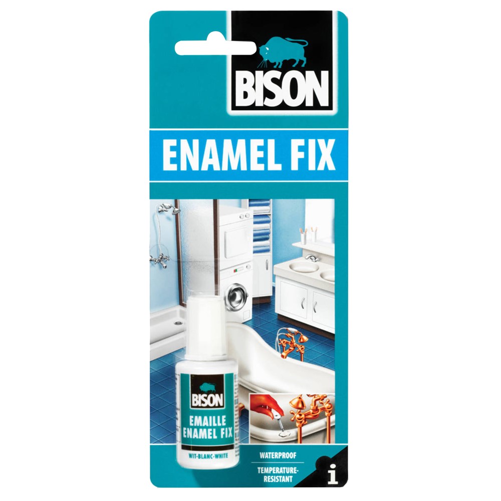Projektuar per riparimin e siperfaqeve metalike me veshje te emaluar. Shpesh here, si pasoje e sforcimeve dhe goditjeve, siperfaqet metalike, te emaluara, plasariten dhe demtohen, derisa shtresa e emaluar bie. Solucioni i markes Bison, mundeson riparim te kesaj siperfaqe dhe njetrajtesimin me siperfaqen e pa demtuar. Ngjyra e badhe e ben te pershtatshem per riparimin e tubave te sobave, vaskave metalike, etj. Aplikimi kryhet ne menyre direkte mbi siperfaqen, kjo e fundit duhet te jete e pastruar.