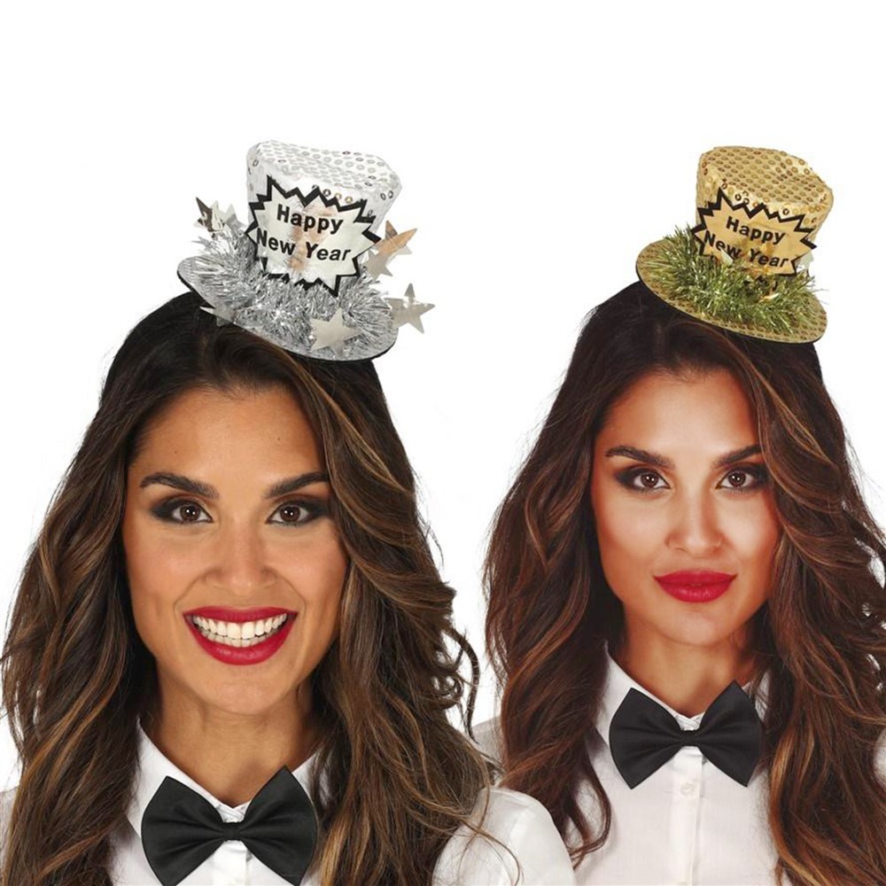 Po vlerësoni:Rreth koke happy New Year, në formë kapele, karton, argjend, floriri