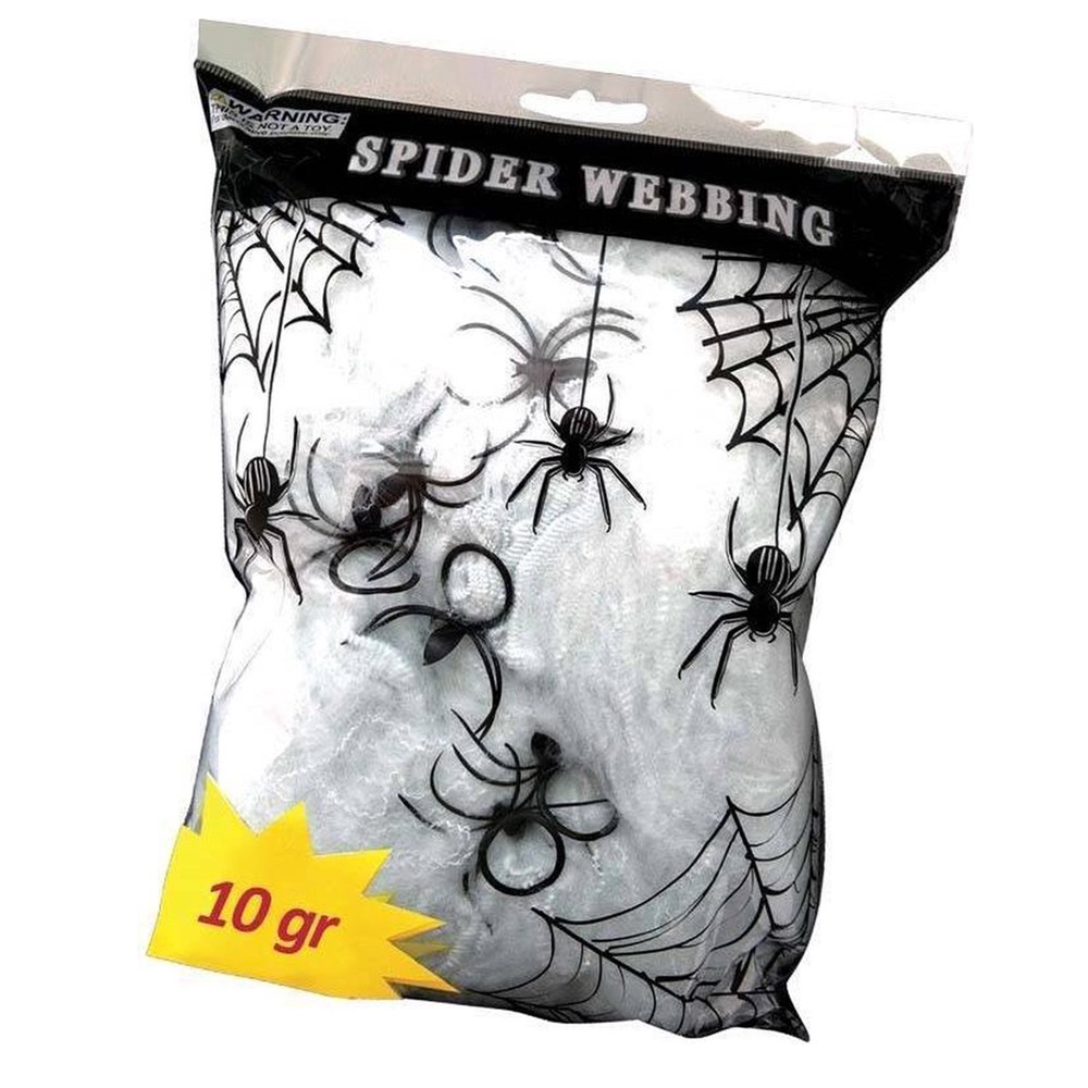 Rrjetë merimange, prej materiali poliestër. Rjeta është në peshë prej 10 gr, e dekorues dhe me 2 spidera në të. Përdoret për dekorim të hapësirave të ndryshme.