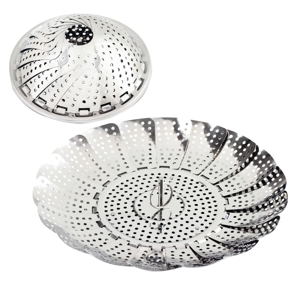 Zgjidhja më e mirë për gatim të lehtë, të shpejtë dhe të shëndetshëm me avull. Avullimi është një zgjedhje e shëndetshme e gatimit sepse ndihmon në ruajtjen e më shumë se 90% të lëndëve ushqyese të humbura kur zihet ose futet në mikrovalë. Rrjeta e avullit të palosshme mund të përdoret për të avulluar perime, ushqime deti, vezë, mish dhe shumë më tepër. Jo vetëm që mund të përdoret si një shportë me avull ushqimesh, por gjithashtu mund të përdoret si një sitë ose si shportë frutash.