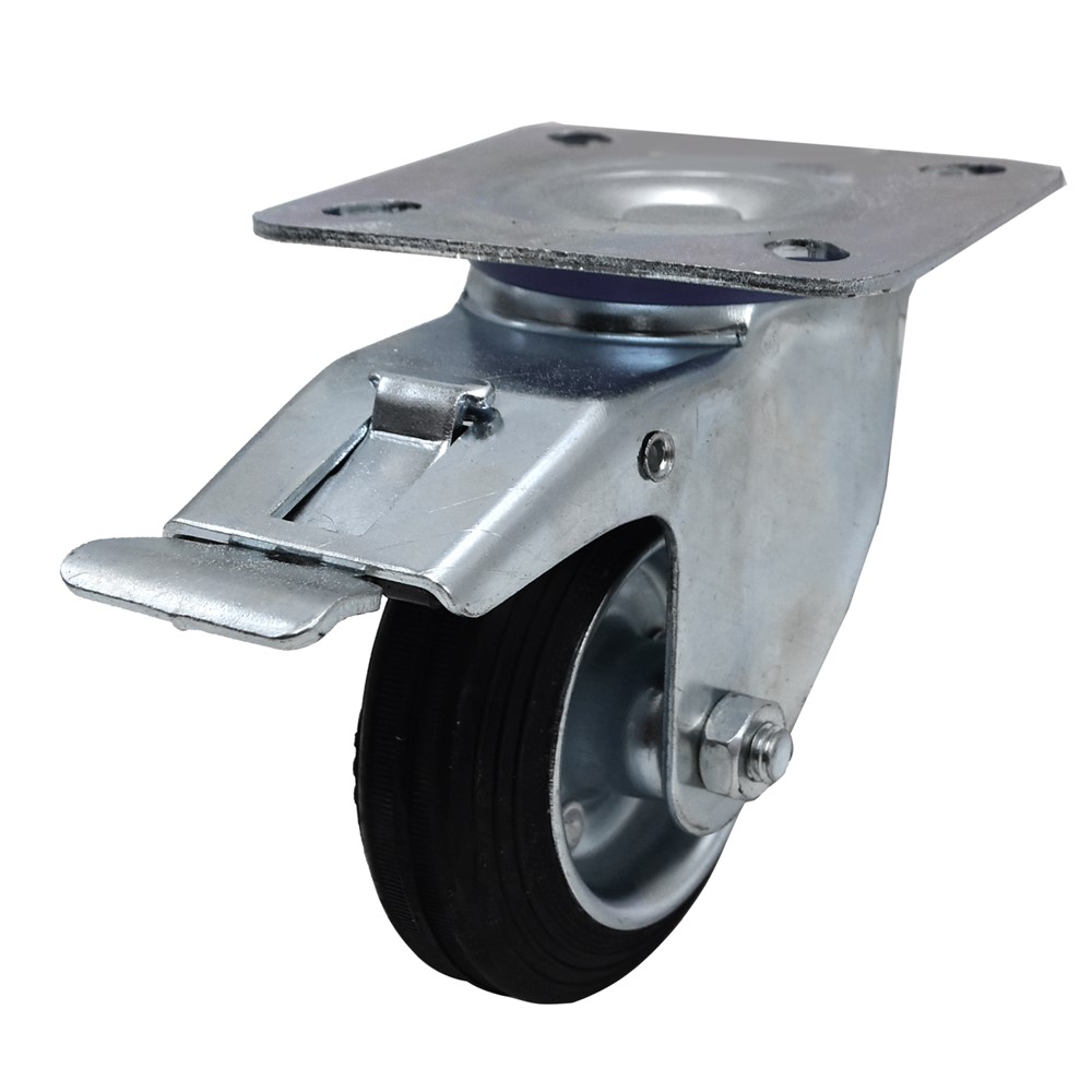 Po vlerësoni:Rrote industriale e rrotullueshme, me frena, gome, disk metalik, Ø100mm