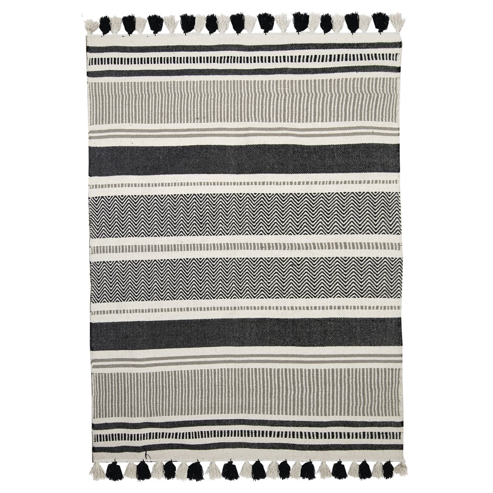 Rrugica e përshkruar është një produkt i rëndësishëm për shtëpinë tuaj. Kjo rrugicë është e bërë plotësisht nga pambuku, një material natyror i njohur për aftësinë e tij të absorbimit të ujit dhe komoditetin. Rrugica është me kombinim ngjyrash të bardhës dhe të zezës, duke i dhënë një pamje të kontrastuar dhe stilike. Dimensionet e rrugicës janë 120x170 cm, e cila është e përshtatshme për të vendosur në shumë pjesë të shtëpisë.