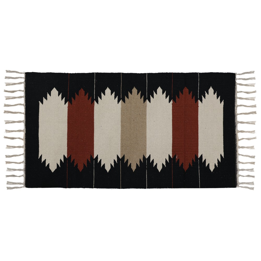 Rug with fringe, 100% cotton, black with motifs, 55x120 cm