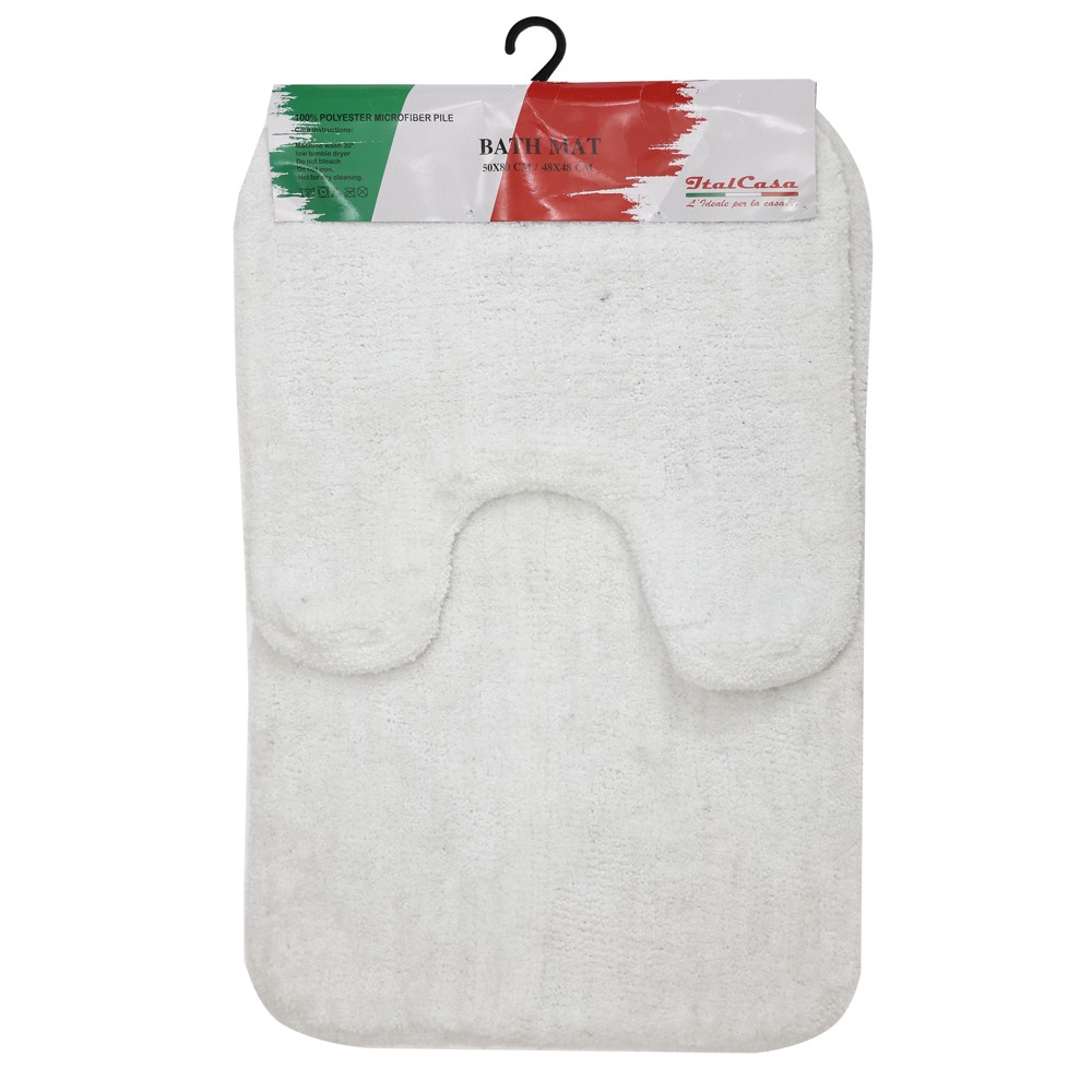 Rrugicë tualeti, set me 2 copë, mikrofibër, e bardhë, 50x48cm; 80x48 cm