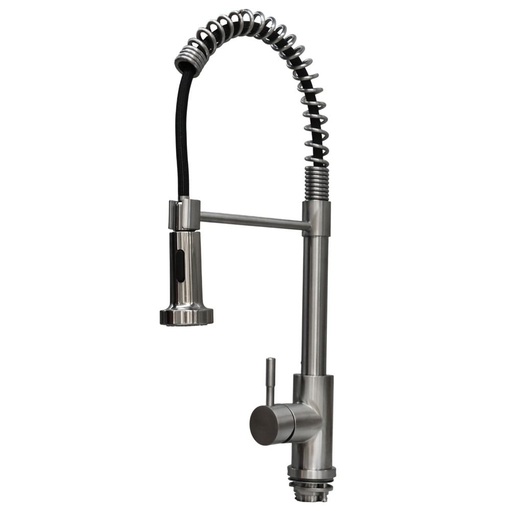 Rubinet lavapjate Pull-Out me dizajn modern dhe funksional, i realizuar nga material bronzi dhe me përfundim argjend mat, që i jep kuzhinës një pamje elegante dhe bashkëkohore. Pajiset me kokë tërheqëse (me tërheqje), e cila mundëson përdorim praktik dhe fleksibil gjatë larjes së enëve dhe pastrimit të lavapjatës. Rubineti përfshin tuba fleksibël 1/2”, të cilët sigurojnë montim të lehtë dhe lidhje të qëndrueshme. Materialet cilësore ofrojnë rezistencë të lartë ndaj konsumit dhe përdorim afatgjatë, duke e bërë ideal për kuzhina moderne.