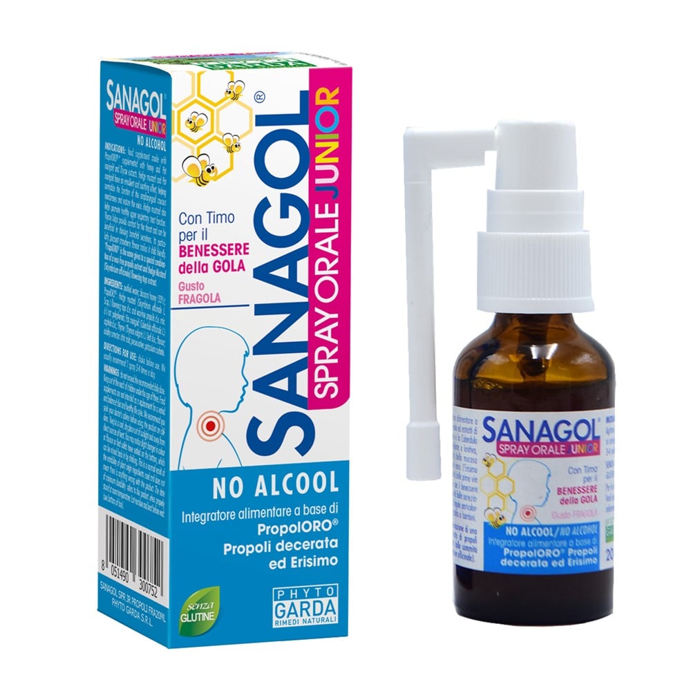 Sanagol spray për fëmijë, me një formulë të pasuruar me ekstrakt propolis, mjaltë dhe esencë aloe vera, pa përmbajtje gluteni, laktoze apo alkooli, që ndihmon në trajtimin dhe zbutjen e dhimbjes apo irritimit të fytit. Mënyra e përdorimit: rekomandohet të aplikohet 1 sprucim 3-4 herë në ditë.