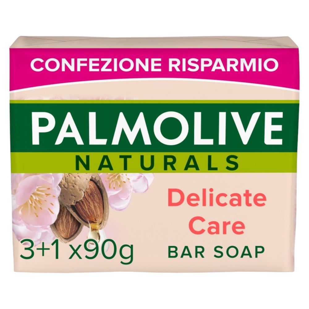 Sapuni i ngurtë Palmolive i cili vjen në paketim 4x90 gr. Palmolive Delicate care është i pasur me ekstrakt bajame. Ky sapun ndihmon në hidratimin e lëkurës, duke e bërë që të ndjehet e butë dhe e mëndafshtë.