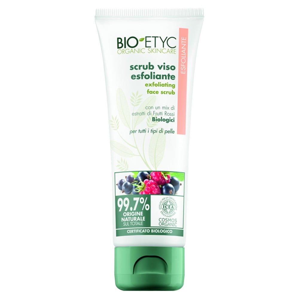 Skrab eksfoliues organik Bioetyc 75ml. I përshtatshëm për të gjitha llojet e lëkurës. Stimulon rinovimin e qelizave, eksfolion dhe largon papastërtitë e fytyrës. Me një përzierje ekstraktesh organike të frutave të kuqe dhe mikrogranulash me veprim eksfoliues. Masazhojeni në lëkurë të thatë ose të lagur. Shpëlajeni me ujë të ngrohtë. Shmangni kontaktin me sytë. Testuar dermatologjikisht.