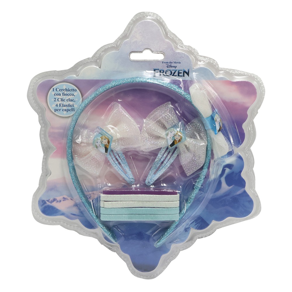 Set aksesorë flokësh për fëmijë, Frozen II është një set që përfshin 3 aksesorë të dizajnuar me motive të personazheve të Frozen II. Aksesorët vijnë në ngjyrën blu. Ky produkt është i përshtatshëm për fëmijët që duan të dekorojnë dhe stilezojnë flokët e tyre me motive të personazheve të Frozen II.