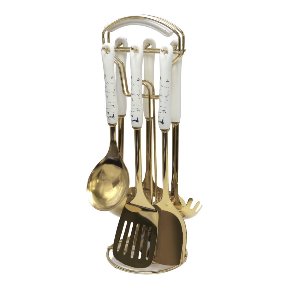 Set kitchen Accessories Service (PK 7), stainless, gold/white, Dia.14x40 cm