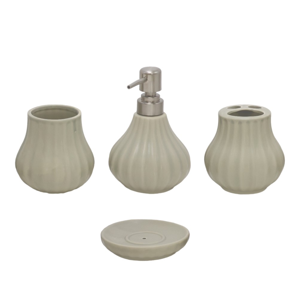 Set aksesorë tualeti, 4 copë, qeramikë, bezhë