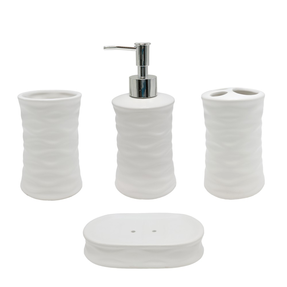 Set aksesorë tualeti, 4 copë, qeramikë, e bardhë