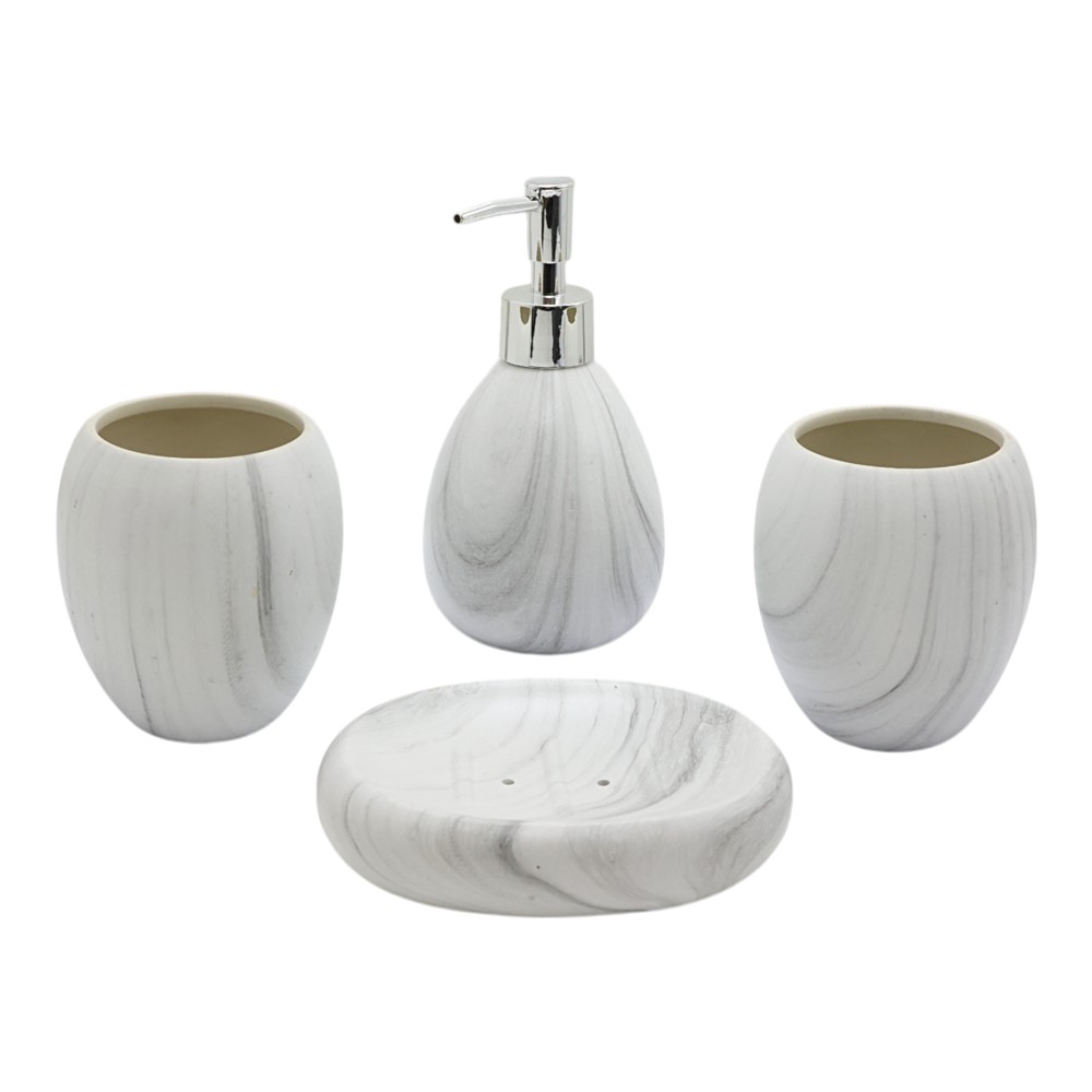 Set aksesorë tualeti, 4 copë, Stonis, Qeramikë, Gri,