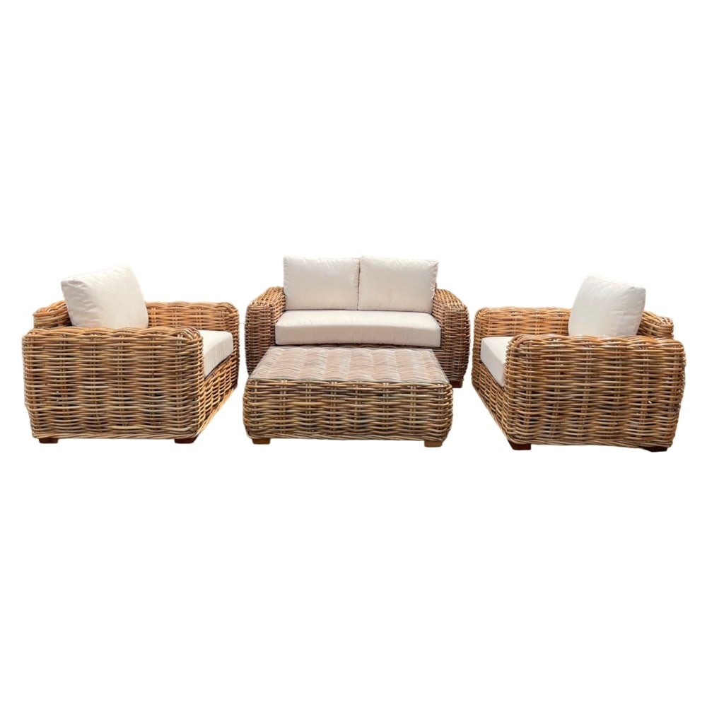 Po vlerësoni:Set Alba Living 2 kolltuk+1sofa+1tavolinë me xham, ratan, kafe natyrale, 104x90xH70 / 224x90xH70 / Dia.80xH35 cm