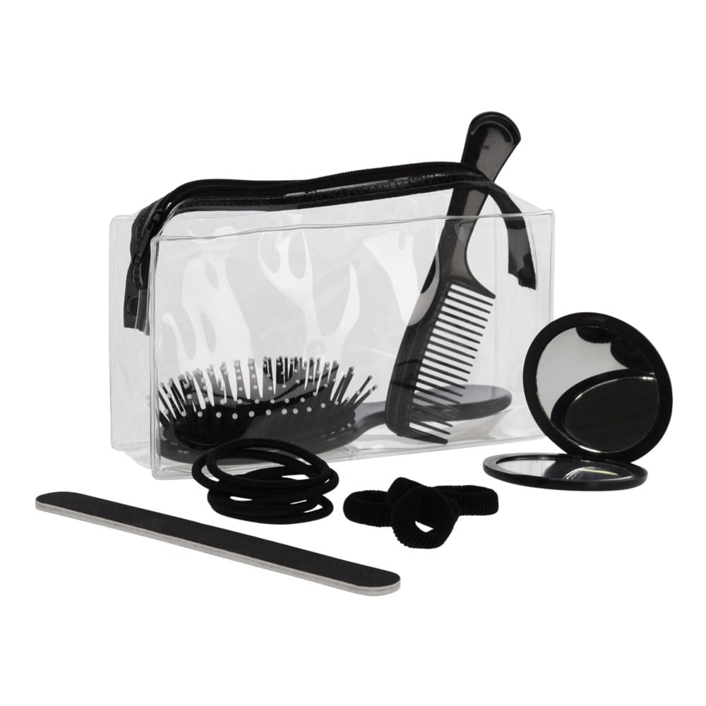 Set cantë kozmetike me aksesorë, transparente/e zezë, mikse, 1 pako