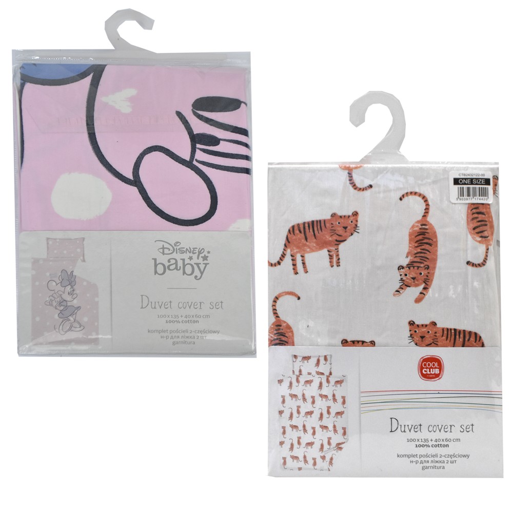 Set çarçafësh për fëmijë, prej material 100% pambuk. Seti përmban dy pjesë, këllëfi i jorganit 100x136 cm, dhe këllëfi i jastëkut 40 x 60 cm.