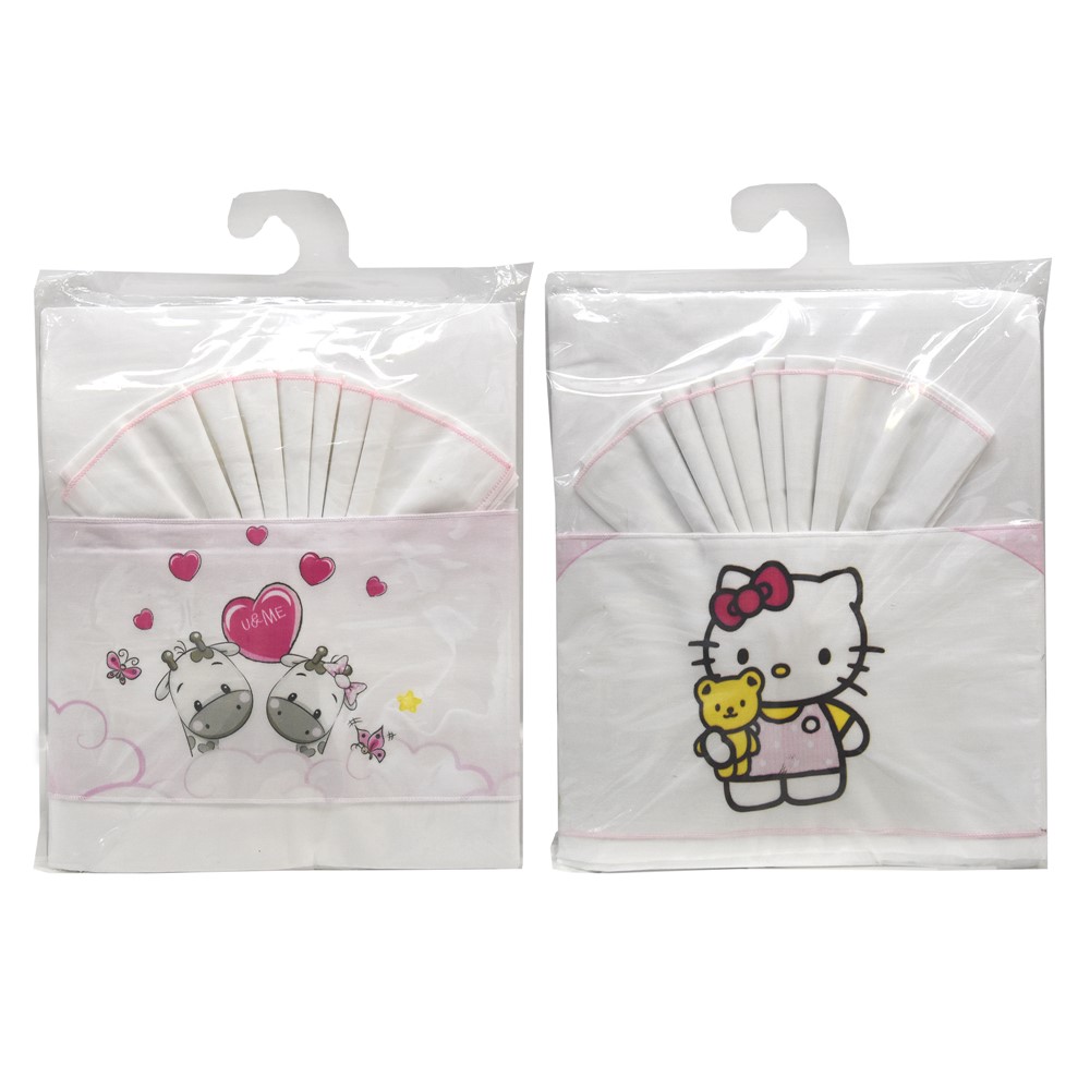 Po vlerësoni:Set çarçafë për krevat fëmijësh, me stampime, pambuk, 1x(170x120)+1x(120x60)+1x(58x38) cm, e bardhë dhe rozë, 3 copë