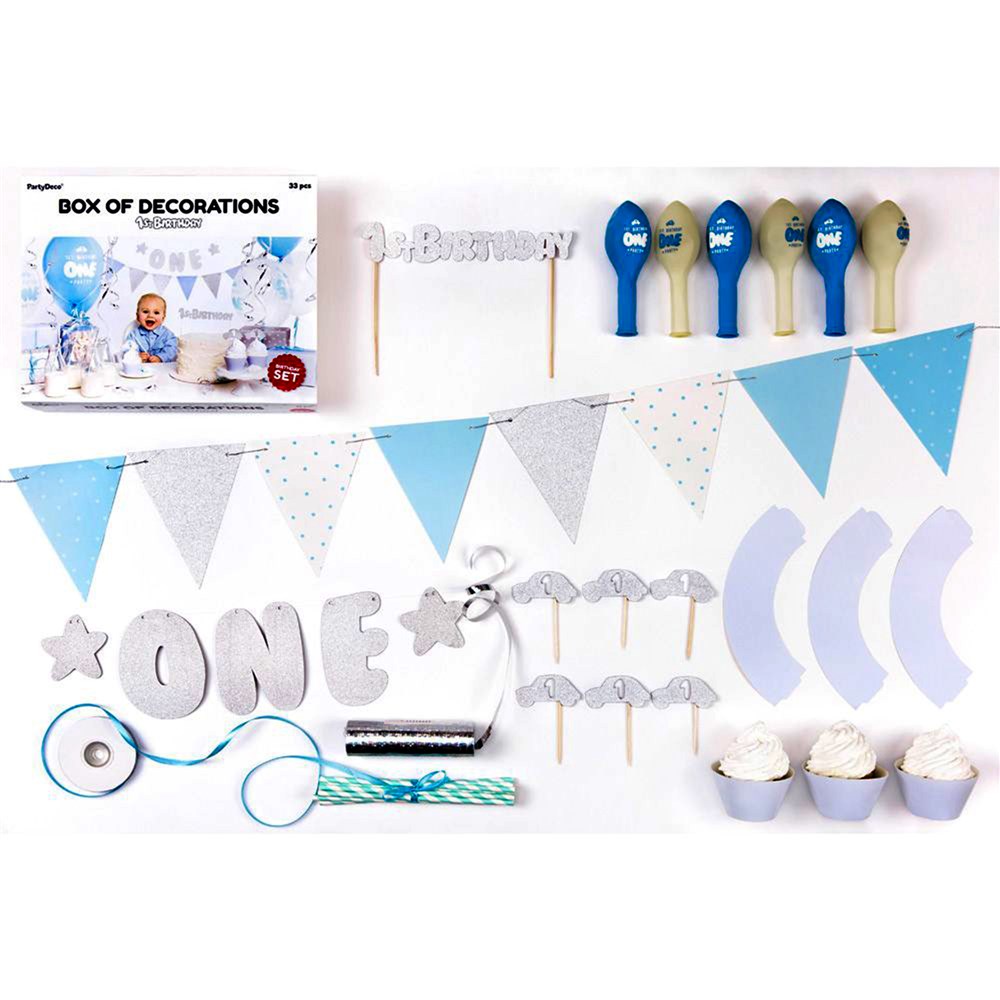 Set dekorimi, 1 birthday, plastik, për djem, mikse, 1 pako