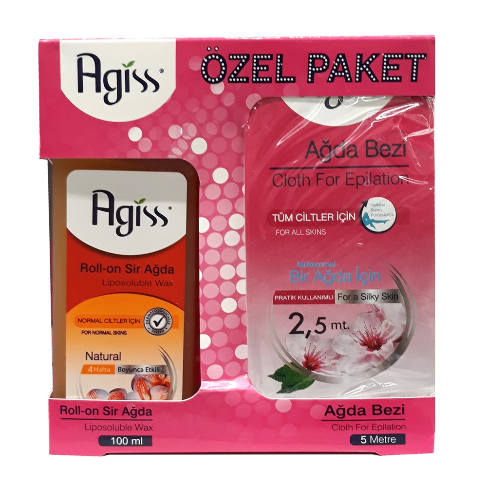 Set depilimi me dyllë Agis, i cili përmban një pecetë 5 metra për depilim dhe një pako dylli të tretshëm në lipide, me vaj vegjetal dhe aromë orkideje. Ky produkt është i përshtatshëm për të gjitha llojet e lëkurës.
