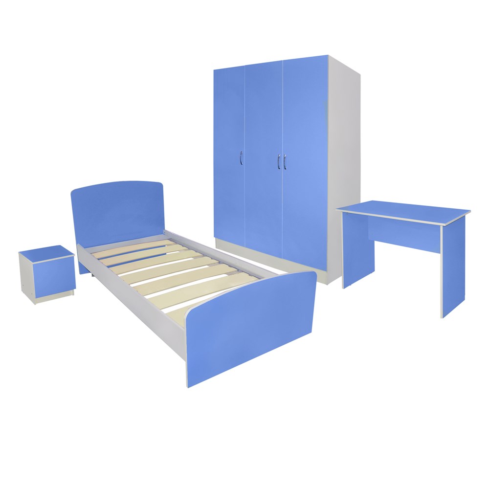 Seti i dhomës së gjumit ju ofron një mobilje të projektuar sipas deshires se djalit tuaj. Përbërë nga një krevat , 1-komodine , 1- tavoline studimi, dhe një dollap. Dhoma e gjumit shumë e rehatshme që spikat dhe krijon atmosferë brenda çdo vendosje në dhomën djalit tuaj.Komodina e nates, e pershtatshme për të mbajtur sendet e ndryshme. Dollapi i rrobave me tre dyer, sergjenë të brendshëm, tubin për varjen e rrobave. Tavolina e studimit ka hapesiren e mjaftueshme per lexim dhe studim me lapotop, pc etj.