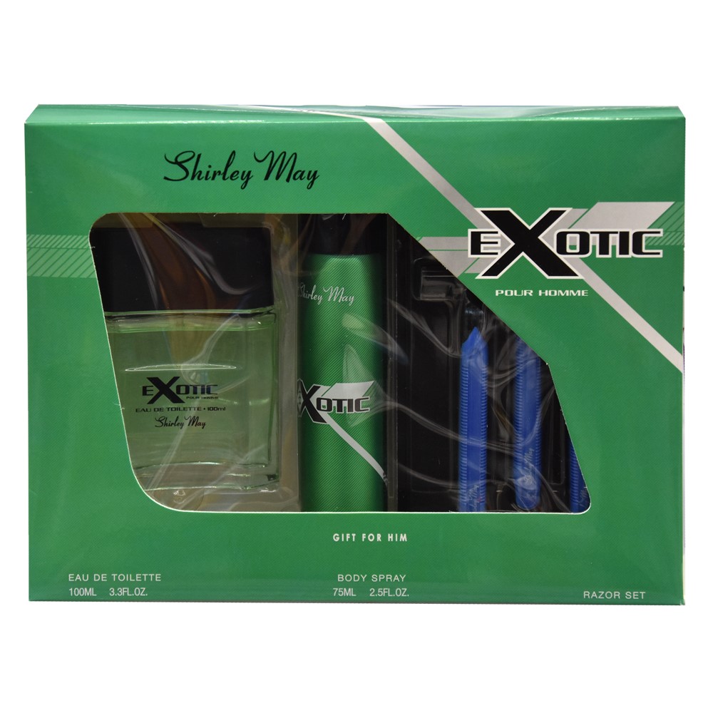 Set dhuratë për meshkuj, i cili përmban eau de toilette (EDT), me përqendrim 5-15% të vajrave esencialë (parfum) dhe me një aromë që zgjat shumë. Seti përmban gjithashtu një sprai trupi, me efekt hidratues dhe zbutës për lëkurën e trupit, me përmbajtje parfumi, dhe 3 brisqe rroje të qëndrueshme prej materiali inoksi.