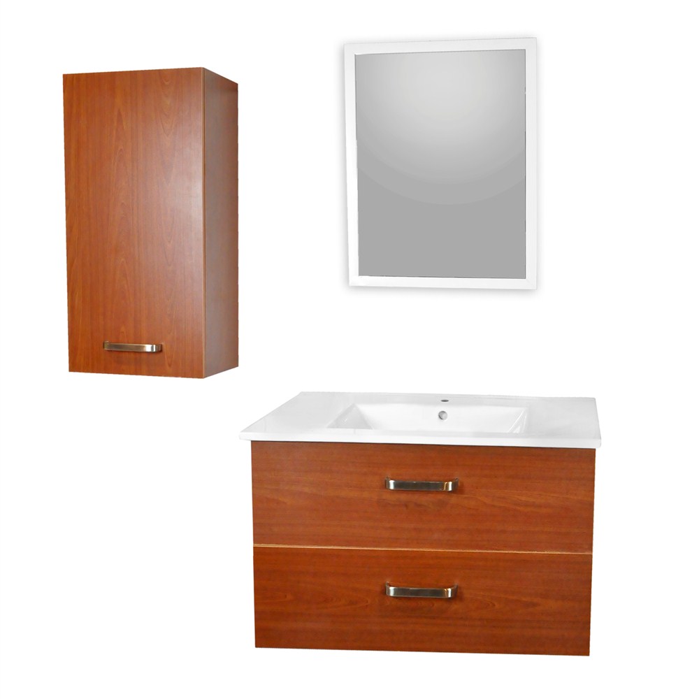 Seti i kompletuar i mobilieve të banjës “Homeline” prezanton dizenjon elegante që gjallëron tualetin tuaj.Materiali MDF ofron rezistencë të lartë ndaj lagështirës dhe lehtësi për t’u pastruar duke siguruar një pamje të bukur, që zgjat.Lavamani i porcelanit me mobiljet qershi përshtatet për tualete me hapësira mesatare dhe të mëdha,me pllaka moderne njëngjyrëshe si të bardha, bezhë, gri etj..Seti përfshin lavamanin, dollapin poshtë tij, pasqyrën dhe dollapin anësor, të gjitha të paketuara për një montim shumë të thjeshtë dhe të shpejt nga kushdo. Me këtë set, ju mund të rimodeloni herë pas here ambientin vetëm me zhvendosjen e dollapit anësor me varje në mur, duke shfrytëzuar maksimalisht hapësirat dhe duke sjellë gjithmonë risi dhe argëtim në shtëpinë tuaj.