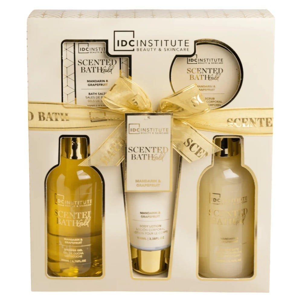 Po vlerësoni:Set dushi, IDC, Gold, 200 ml bubble bath, 200 ml xhel dushi, 100 gr kripë dushi, 60 ml scrub, 100 ml krem trupi, 1 pako