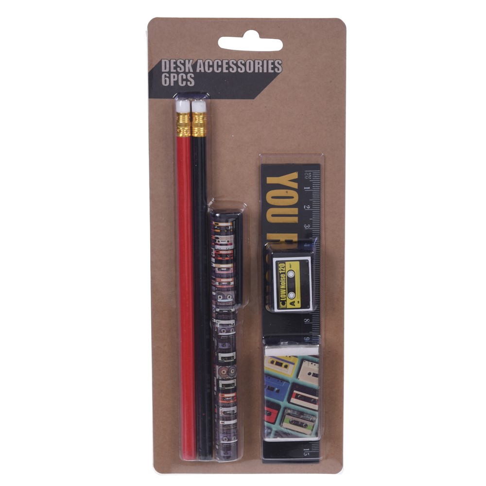 Set kancelarie, dru, plastikë, metal dhe gomë, 23 cm, mikse, 6 copë