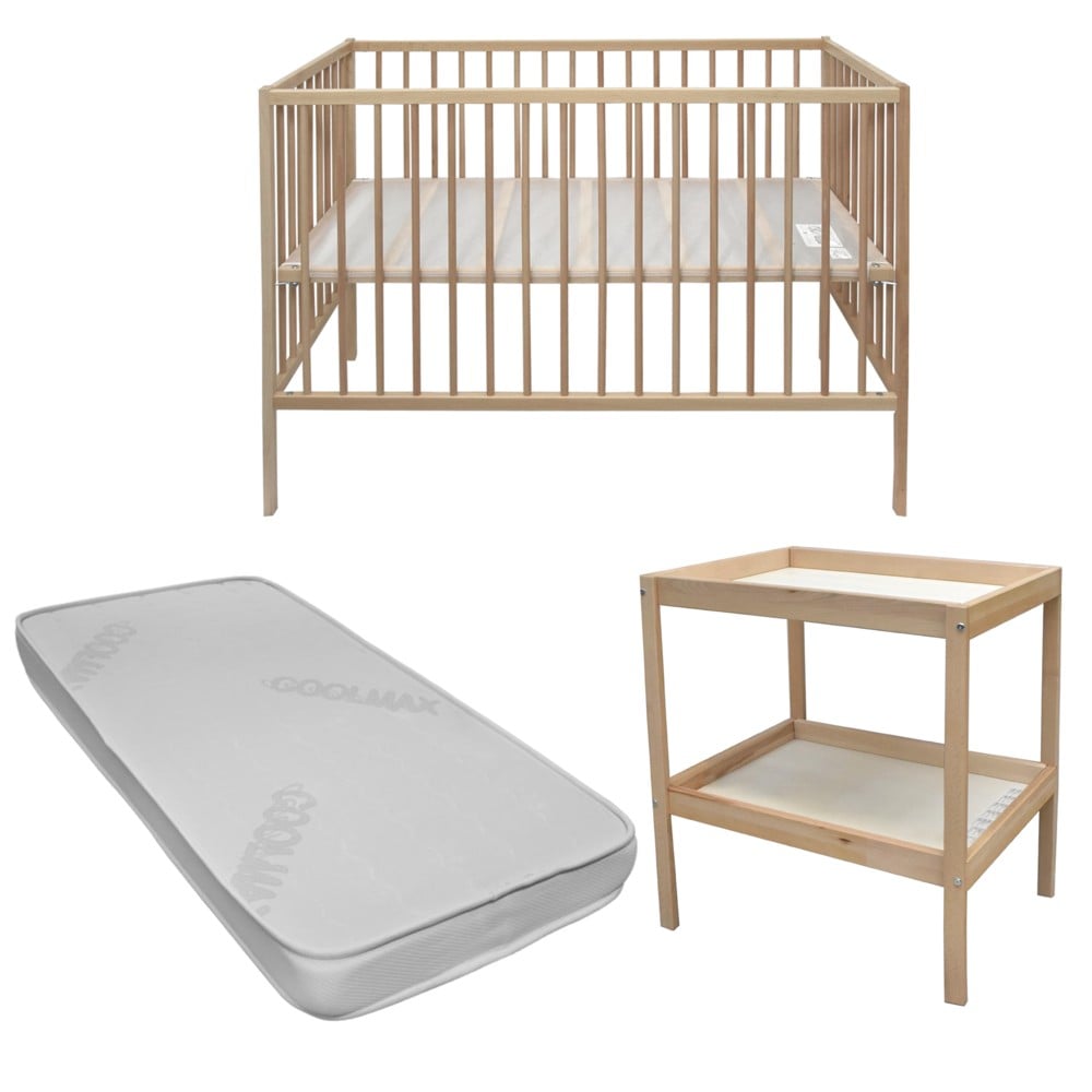 Po vlerësoni:Set krevat per bebe 120x60 cm + raft multifunksional 48x69x68 cm + dyshek 120x60 cm, druri, natyrale
