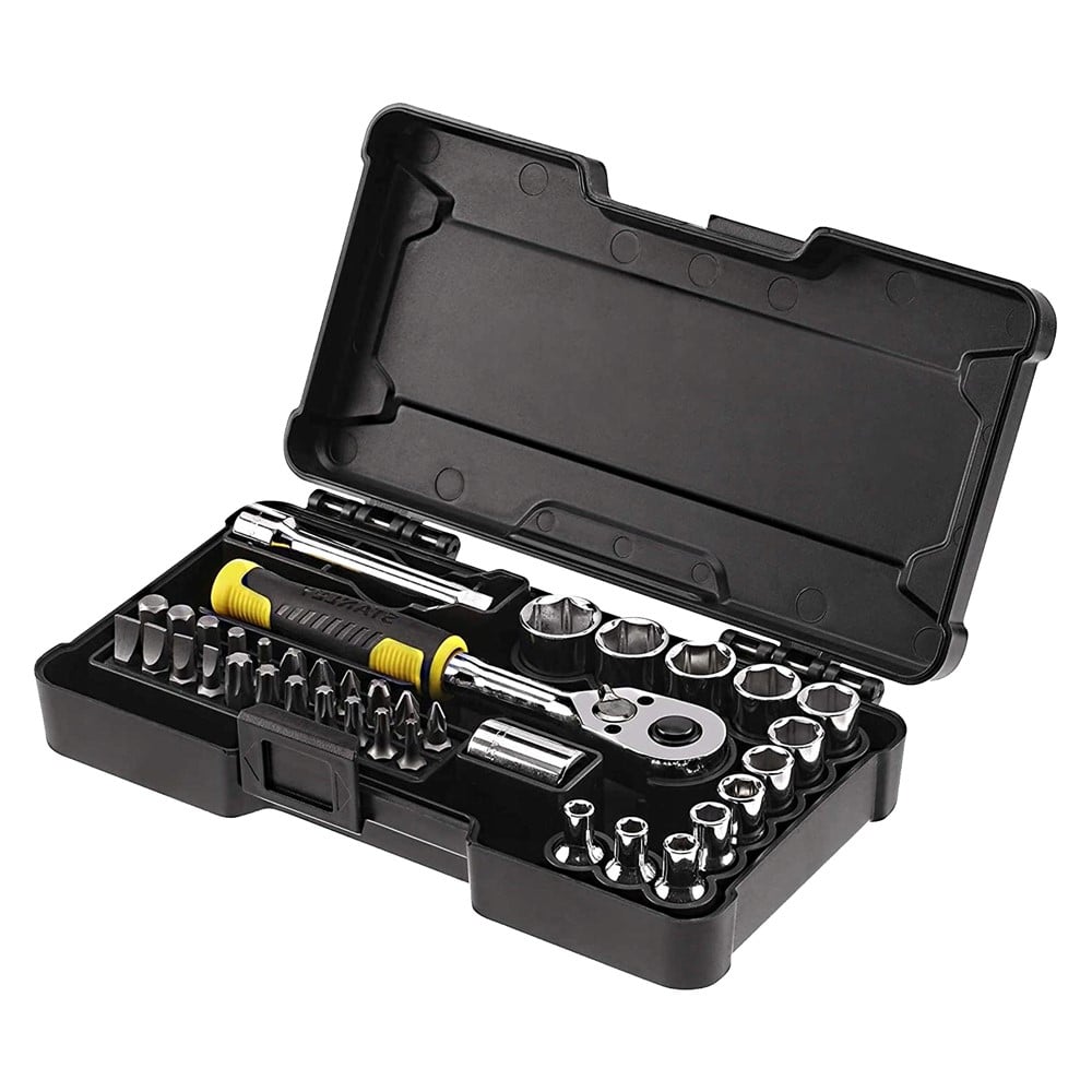 Ndertuar nga materiale te cilesise maksimal. Perbere ga celik special veglash, me rezistence te shkelqyer ndaj degradimit si pasoje e perdorimit intesiv dhe te vazhdueshem. Perbere nga : kokat 1/4" me diameter : 4-4.5-5-6-7-8-9-10-11-12-13-14 mm, zgjatues 1/4", 75 mm, maja, Pz 1-2-3, Ph. 1-2-3, hex. 3 -4-5-6-7 mm, Torx 10-15-20-25-27-30-40, std 4-5-6-7 mm. Doreza prej gome, amortizon sforcimet edhe ne punet me kerkuese. Ideale per profesionistet e fushes se riparimit dhe montimit mekanik.