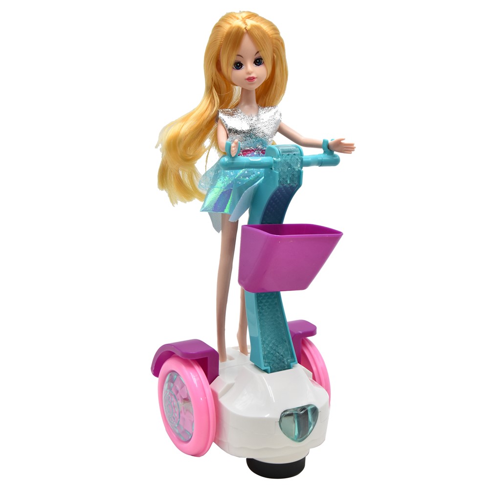 Set lodër për vajza, i cili përfshin një kukull dhe një scooter, prej materiali plastik, me drita dhe muzikë. Punon me 3 bateri 1.5 V të tipit AA, të cilat nuk janë të përfshira në paketim. Ky set ndihmon në zhvillimin e imagjinatës, zhvillimin e shqisave dhe zhvillimin e aftësive të të mësuarit tek fëmijët. Materiali përbërës dhe boja nuk kanë përmbajtje toksike apo të dëmshme për fëmijët dhe produkti është i çertifikuar për siguri në përdorim. Ky produkt është i përshtatshëm për përdorim nga fëmijë të moshës mbi 3 vjeç.
