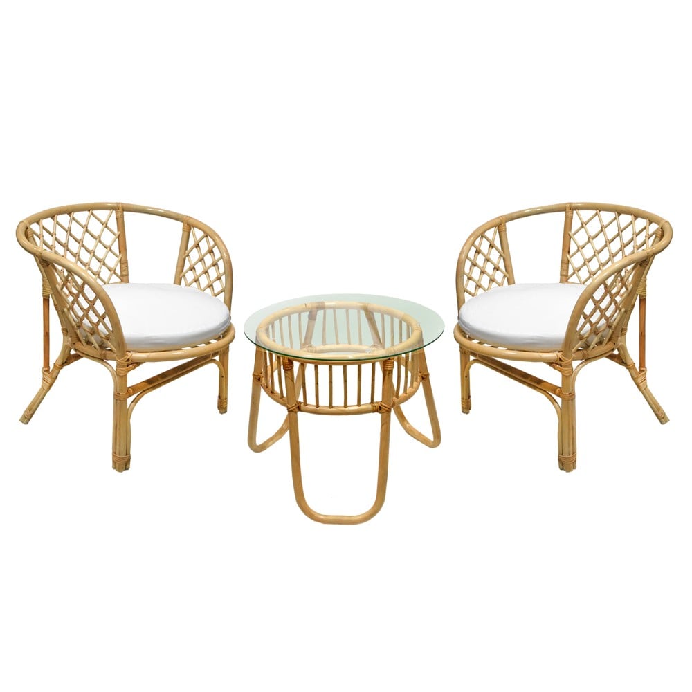 Set shumë komod dhe praktik. I prodhuar nga ratani natyral. Seti është shumë i përshtatshëm për ballkonet apo kopshtet tuaja të gjelbëruara. Me dizajn modern dhe kompakt, seti ofron 2 ulëse të rehatshme me shilte si dhe tavolinën e mesit me xham të temperuar. Falë përmasave kompakte, seti është i përshtatshëm edhe për vende të kufizuara.