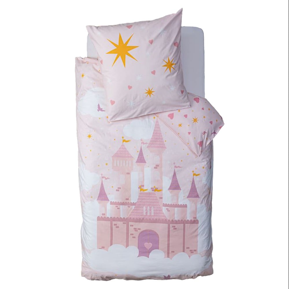 Po vlerësoni:Set mbulesë krevati për fëmijë 140x200 cm + Jastëk 65x65, Castle, rozë, pambuk, 1 copë