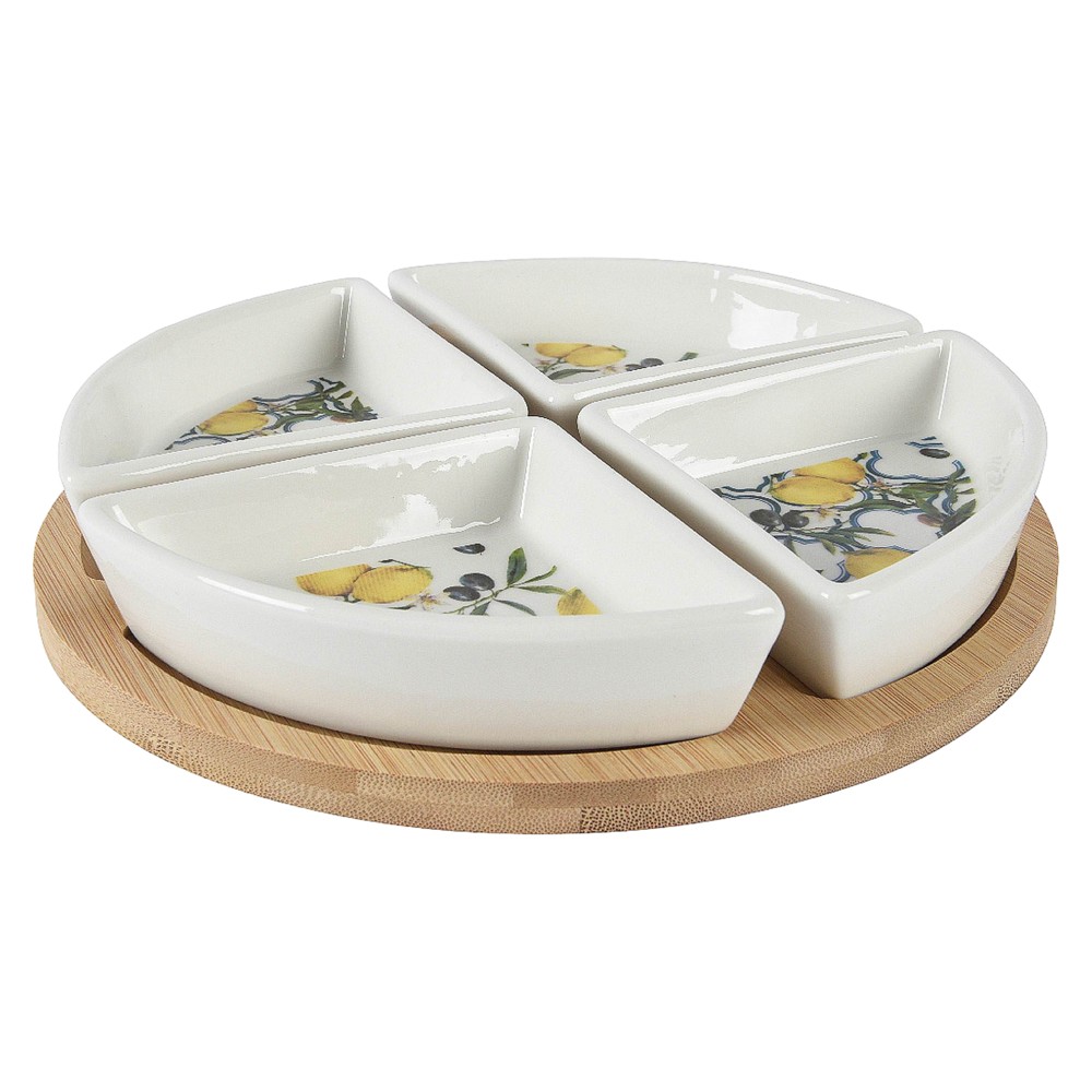 Materiali i tyre bazë është porcelani, i cili jep një ndjesi të butë dhe një prekje të butë në dorë. Bazamentet rrethorë të bambut shtojnë një prekje natyrale dhe të stilizuar, duke e bërë këtë set të dalë në përputhje me dekorin tuaj dhe të ofrojë një përvojë unike për konsumatorët.