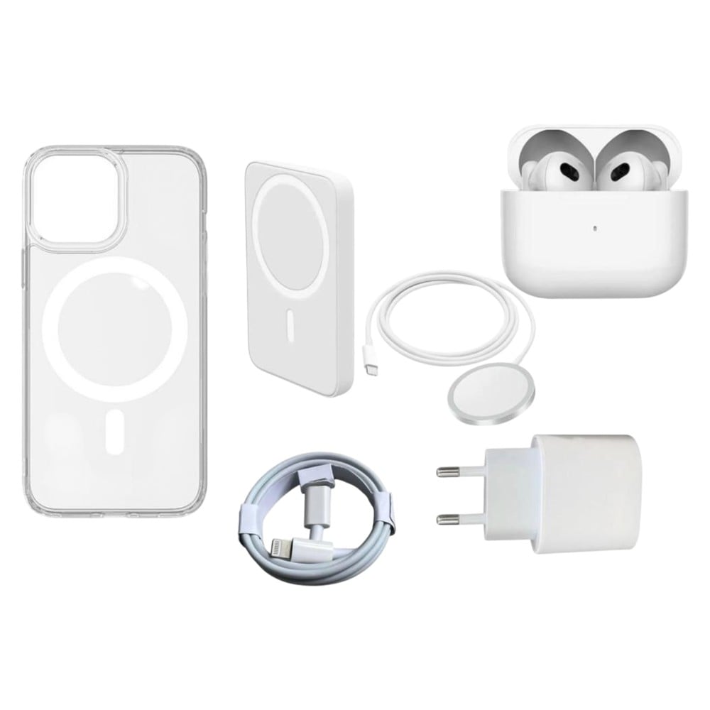 Seti me aksesorë për iPhone QW33, 6 në 1 është një paketë e plotë që përfshin gjithçka që ju duhet për të përmirësuar eksperiencën tuaj me iPhone-in. Ky set është i përshtatshëm për përdoruesit që duan të sigurojnë mbrojtje, komoditet dhe funksionalitet shtesë për telefonin e tyre. Ai përfshin aksesorë si cover për telefonin, fishë karikimi, fishë për karikimin e orës, kokë karikuesi dhe kufje që do t'ju ndihmojnë të përdorni telefonin tuaj më me efikasitet dhe më të mbrojtur.