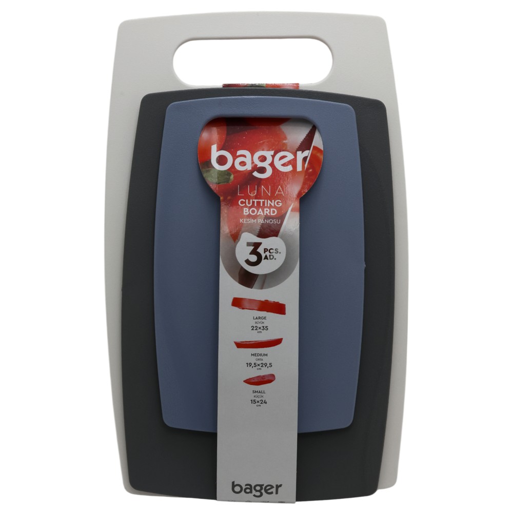 Ky set përmban tre baza prerëse nga seria Luna, të punuara nga plastikë e qëndrueshme dhe e sigurt për përdorim në kuzhinë. Seti vjen me ngjyra të ndryshme, duke ju ndihmuar të dalloni bazat për lloje të ndryshme ushqimesh, duke parandaluar kështu kontaminimin e kryqëzuar (p.sh., një bazë për mish të papjekur, një për perime dhe një për ushqime të gatuara). Përmasat ofrojnë një sipërfaqe të gjerë dhe të rehatshme për të prerë një shumëllojshmëri ushqimesh, nga perimet dhe frutat te mishi dhe buka. Trashësia prej 1.5 cm siguron që bazat të jenë të qëndrueshme dhe të mos deformohen lehtë gjatë përdorimit. Ky set me baza prerëse Luna është një zgjedhje e shkëlqyer për çdo kuzhinë, duke ofruar tre baza të ndryshme me ngjyra për të përmirësuar higjienën dhe organizimin gjatë gatimit. Materiali i qëndrueshëm dhe madhësia praktike i bëjnë ato të domosdoshme për përgatitjen e përditshme të ushqimit.