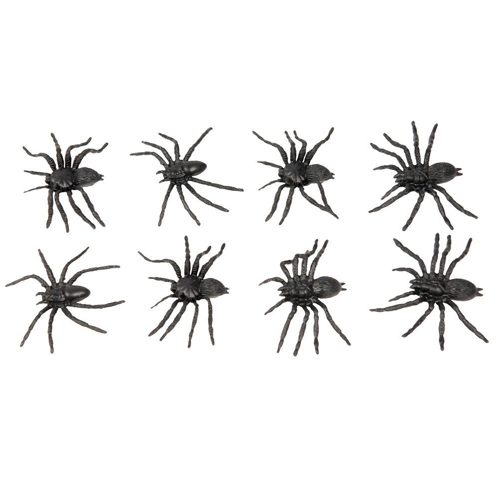 Set me merimanga të zeza dekorative, PVC, 6 cm, e zezë, 8 copë