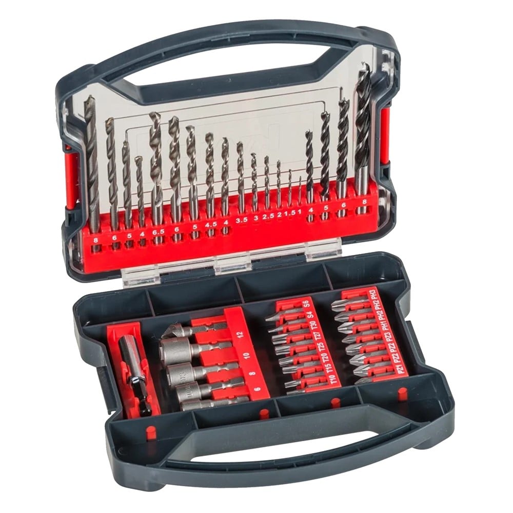 Prodhuar nga celik special veglash dhe projektuar me fokus kryesor rendimentin e larte dhe precizionin ne pune. Ideale per profesioniste te fushes se riparimit te paisjeve mekanike, profesioniste te perpunimit te drurit si dhe ndertues qe perdorin materialet e forta, si betoni, dhe guri natyral. Shume funksionaliteti vjen si pasoje e pranise se elementeve te natyrave te ndryshme te shpimit. Gjithashtu kokat e kacavidave mundesojne montimin e elementeve te objektit te punes, pavaresisht standartit te vides se perdorur. Set profesional, i destinuar per profesioniste te fushave te punimit te metalit, drurit, betonit dhe montimit.